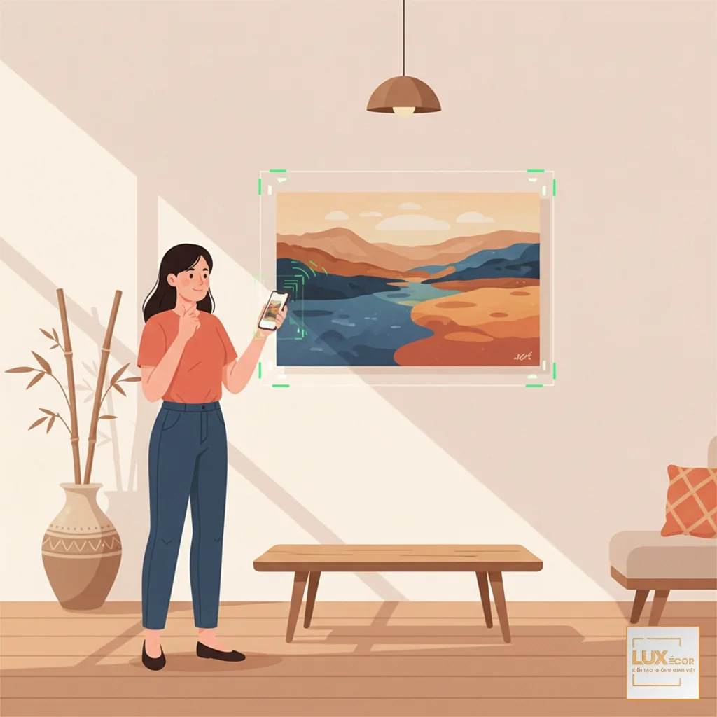 Câu trả lời là , và đây là “vũ khí bí mật” giúp bạn loại bỏ hoàn toàn nỗi lo mua sai tranh. Công nghệ thực tế tăng cường (AR) cho phép bạn dùng camera điện thoại để “ướm thử” bất kỳ bức tranh nào lên tường nhà mình theo đúng tỷ lệ thực.