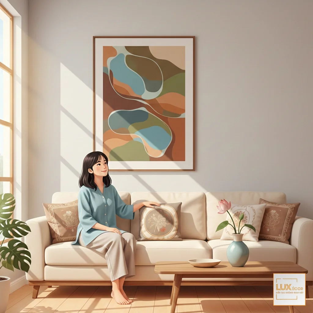 Mẹo nhỏ: Trước khi chọn tranh, hãy tự hỏi mình: “Tôi muốn cảm thấy thế nào khi ở trong căn phòng này?” – Thư giãn, năng động, ấm cúng hay sang trọng? Câu trả lời sẽ là kim chỉ nam giúp bạn thu hẹp lựa chọn về màu sắc và chủ đề.