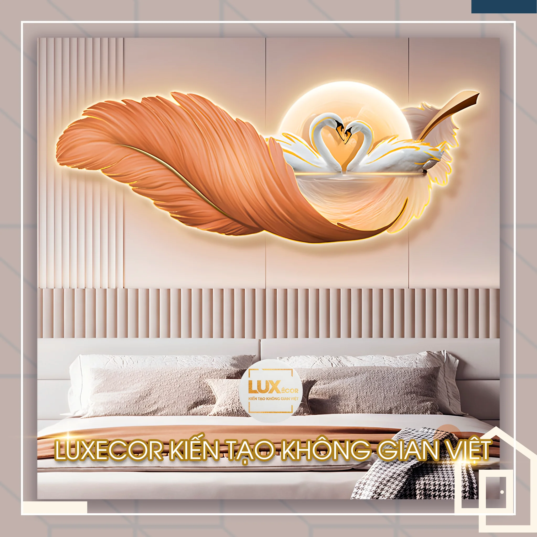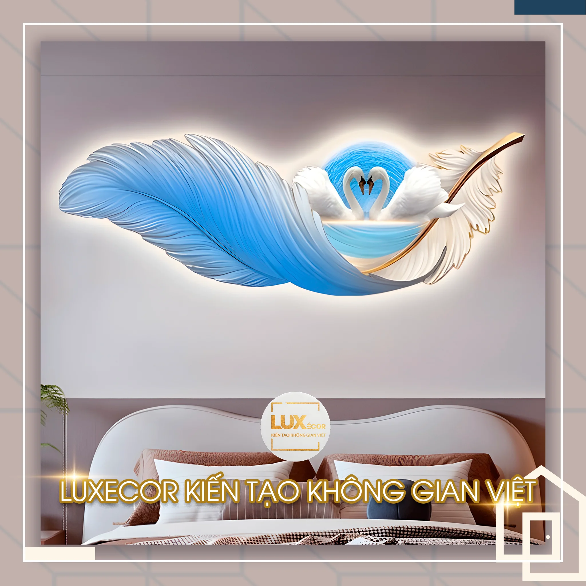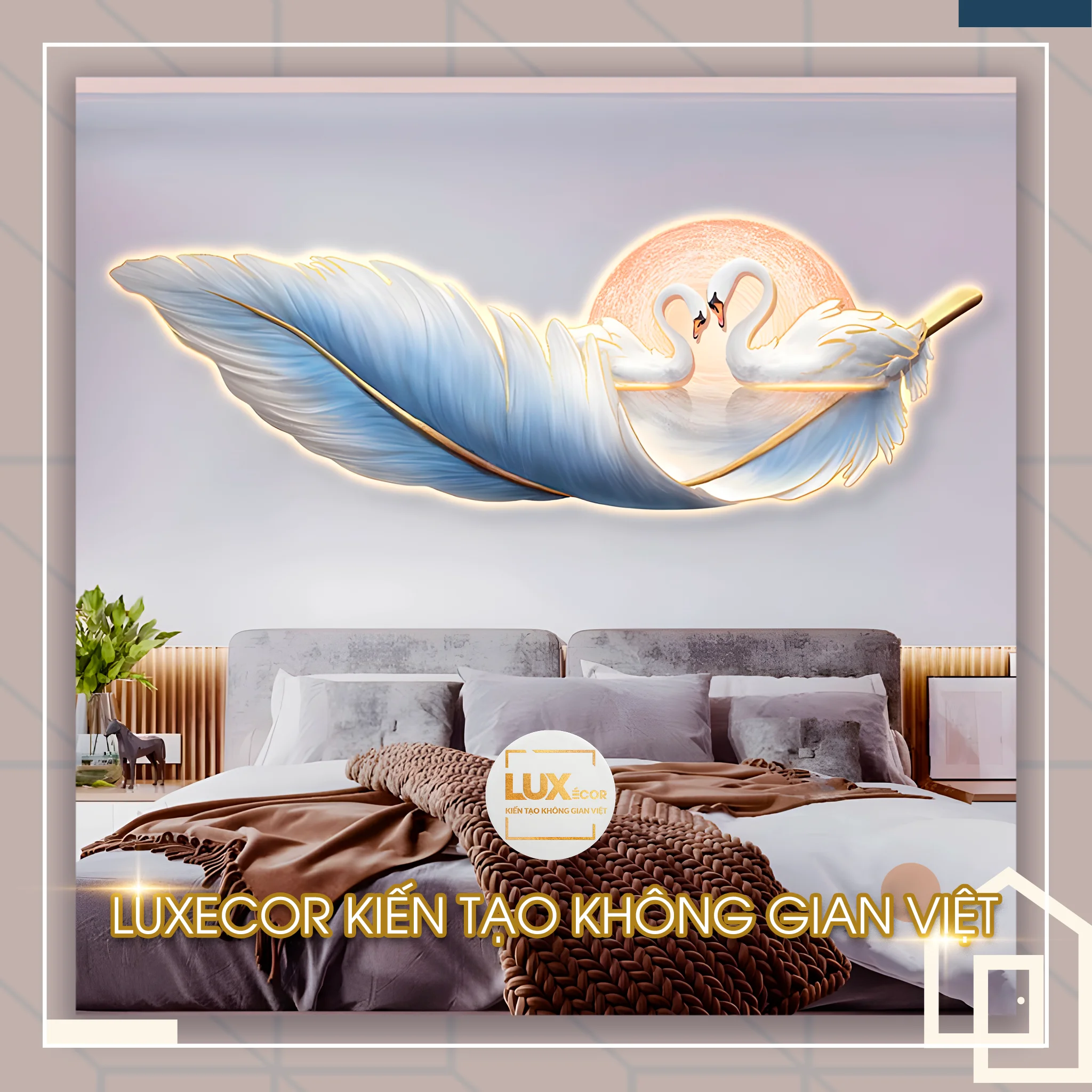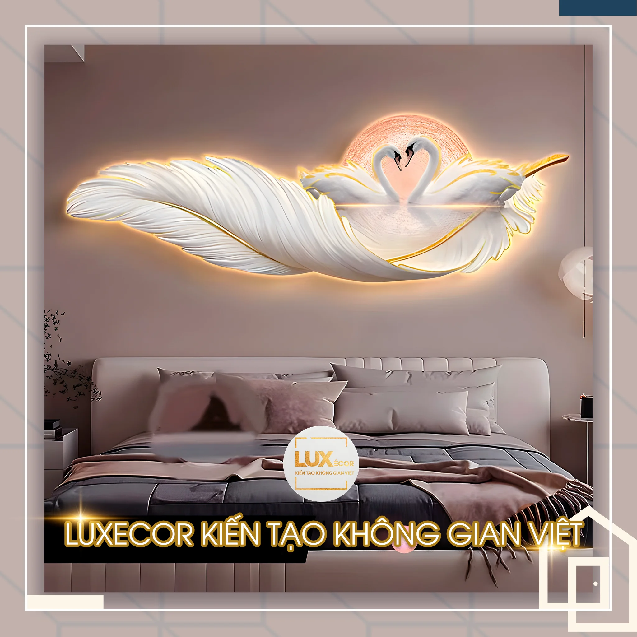 Tranh đèn led tráng gương lông vũ và thiên nga LUXECOR tại tp Hồ Chí Minh