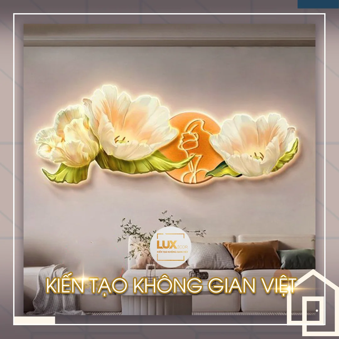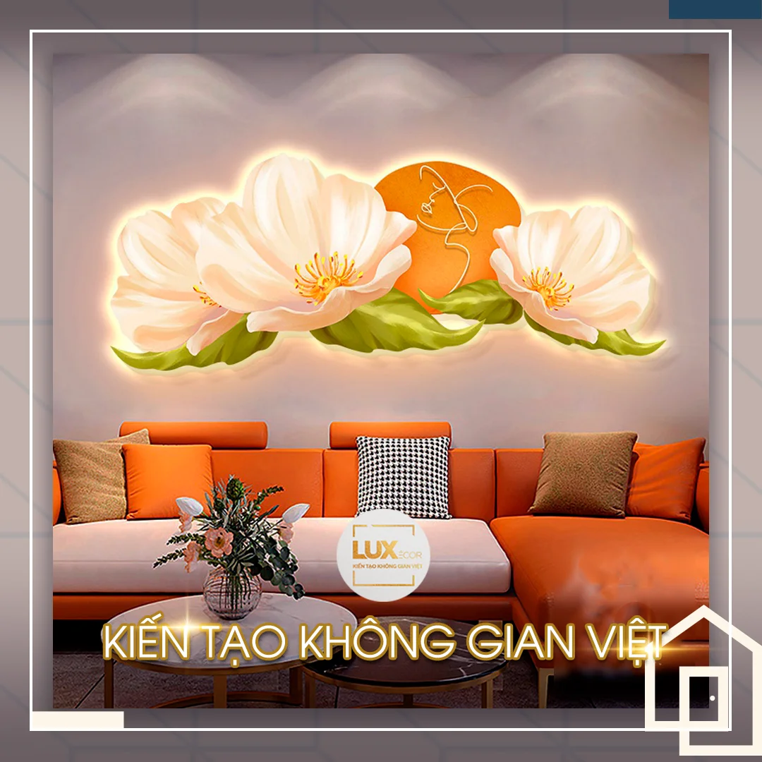 Đánh giá Tranh tráng gương đèn led treo tường phủ bóng in bông hoa vàng nghệ thuật decor shop cửa tiệm nhà hàng quán ăn LUXECOR