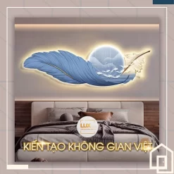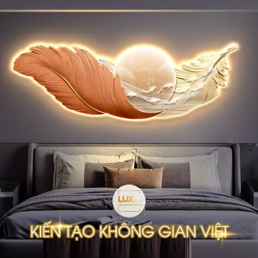 Ảnh thực tế Tranh tráng gương đèn led cặp đôi thiên nga lông vũ trắng LUXECOR