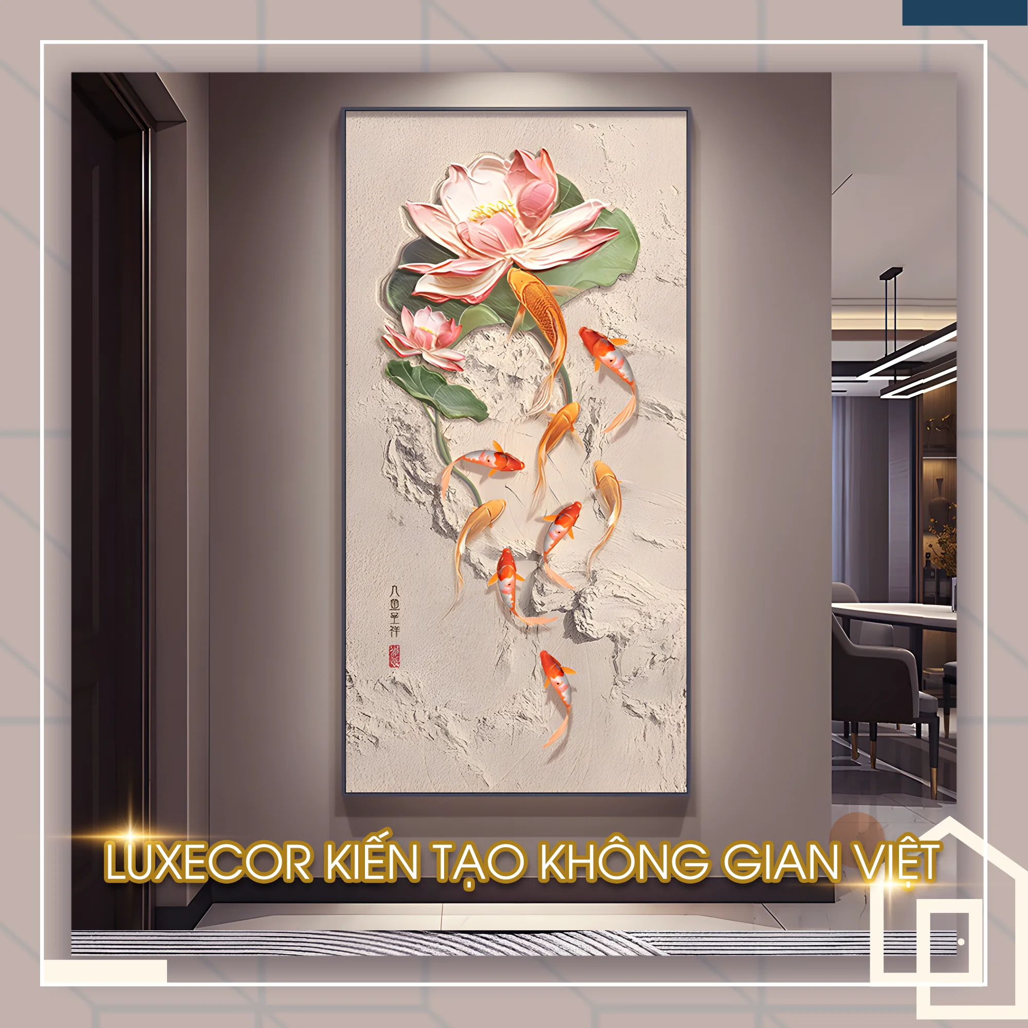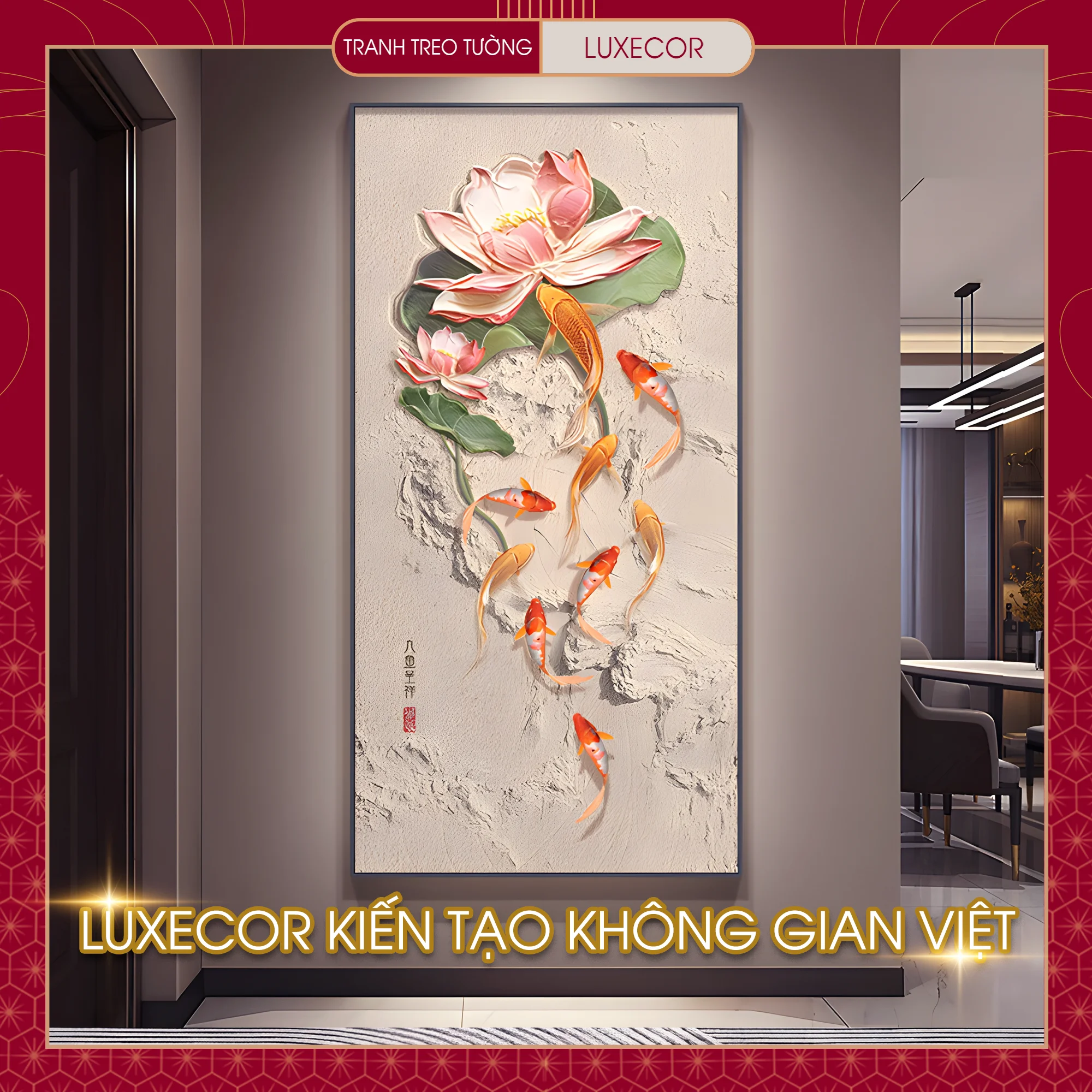 Đánh giá Tranh Tráng Gương Hoa Sen Vàng Cửu Ngư Quần Tụ Khổ Đứng Shop Tranh Treo Tường LUXECOR
