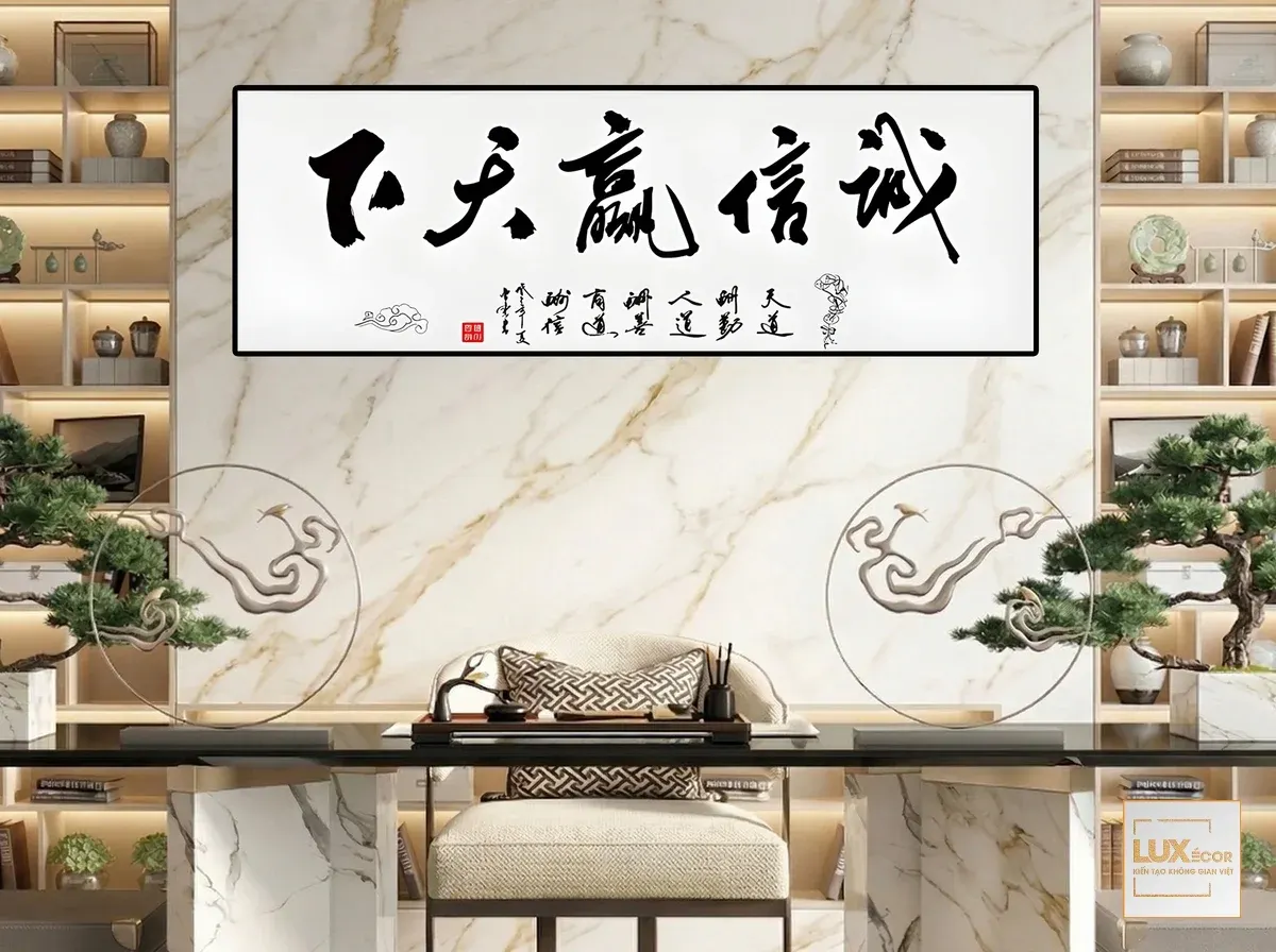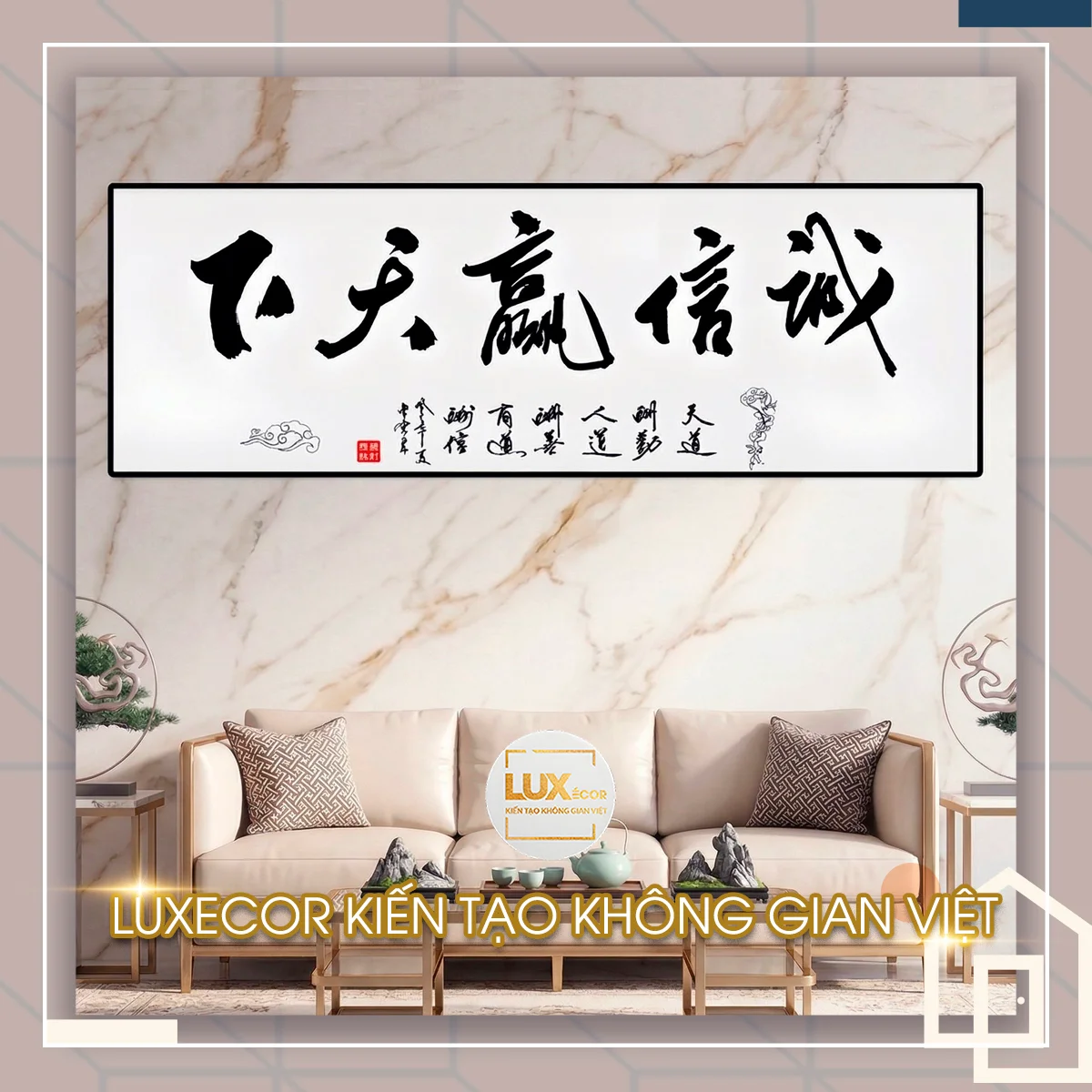 - Mẫu LUX-4005: Thành Tín Doanh Thiên Hạ (诚信赢天下): Nghĩa là “Lấy sự thành thực, uy tín để chiến thắng thiên hạ”. Đây là kim chỉ nam tối thượng trong kinh doanh, nhắc nhở việc giữ vững chữ Tín để xây dựng sự nghiệp trường tồn.