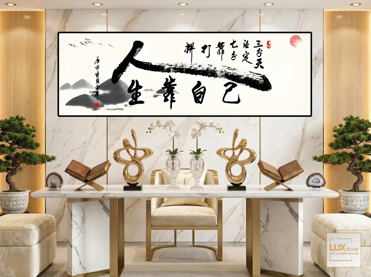 Liên hệ ngay với Luxecor qua Hotline / Zalo hoặc bấm Thêm vào giỏ hàng để sở hữu bức tranh chữ nho phong thủy mang đậm dấu ấn của riêng bạn.